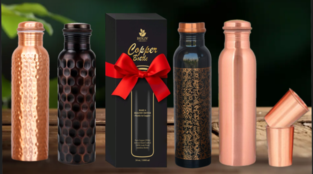Premium copper bottle with matching accessories for elegant gifting.